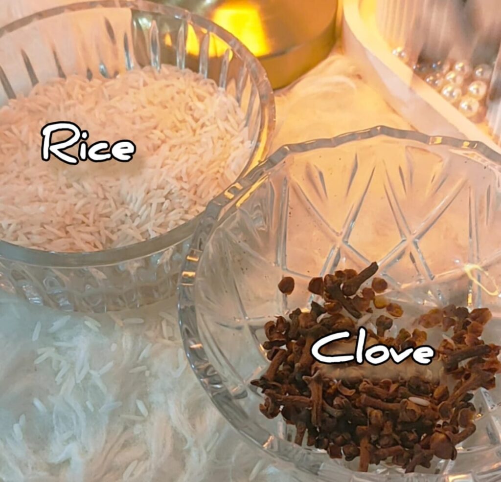 Add rice and cloves to a clean bowl.
